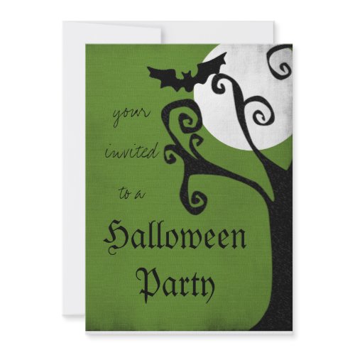 An awesome Halloween party invite featuring a bat flying out from a spooky tree with a full moon in the background. All text is customizable allowing you to personalize this invite. Click on the image to be atekn through to the product page then type your party details in the boxes provided.