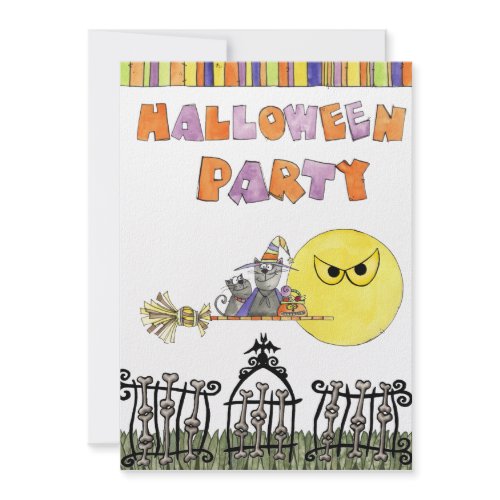 A brilliant Halloween party invite packed full of detail and complete with customizable text on the back. Click on the image to be taken through to the product page where you can personalize your invite by typing your party details in the boxes provided.