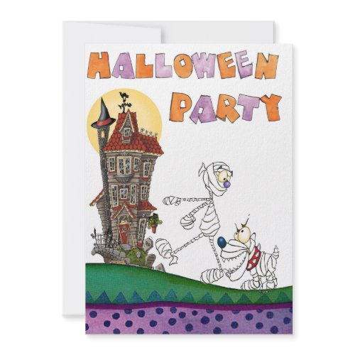 A mummy and its dog are here on this fun invite to help invite all your guests to your Halloween party. Click on the image to be taken through to the product page where you can view the back of the invite where there is customizable text. You can easily personalize this invite by typing your party details in the boxes provided.
